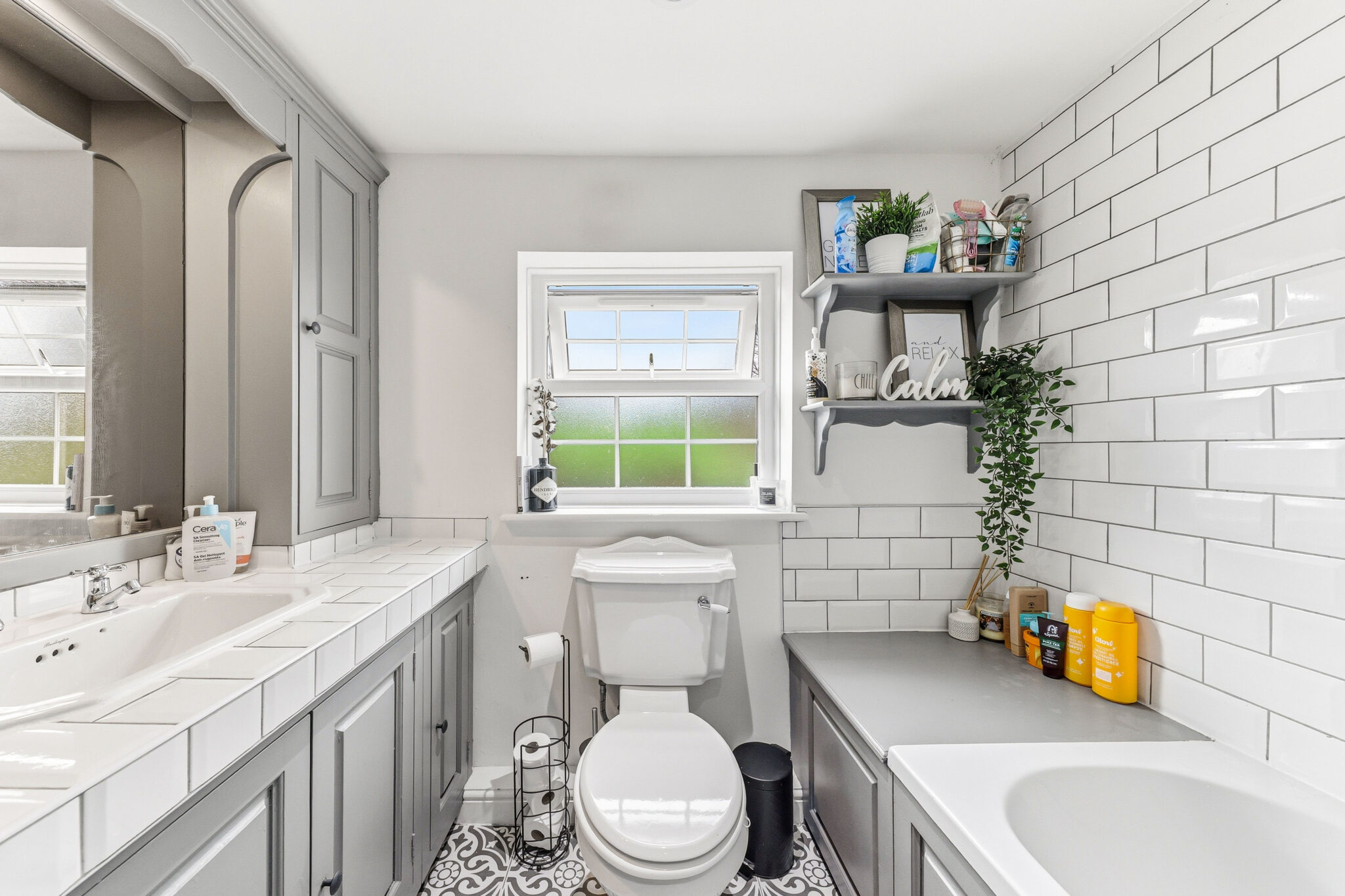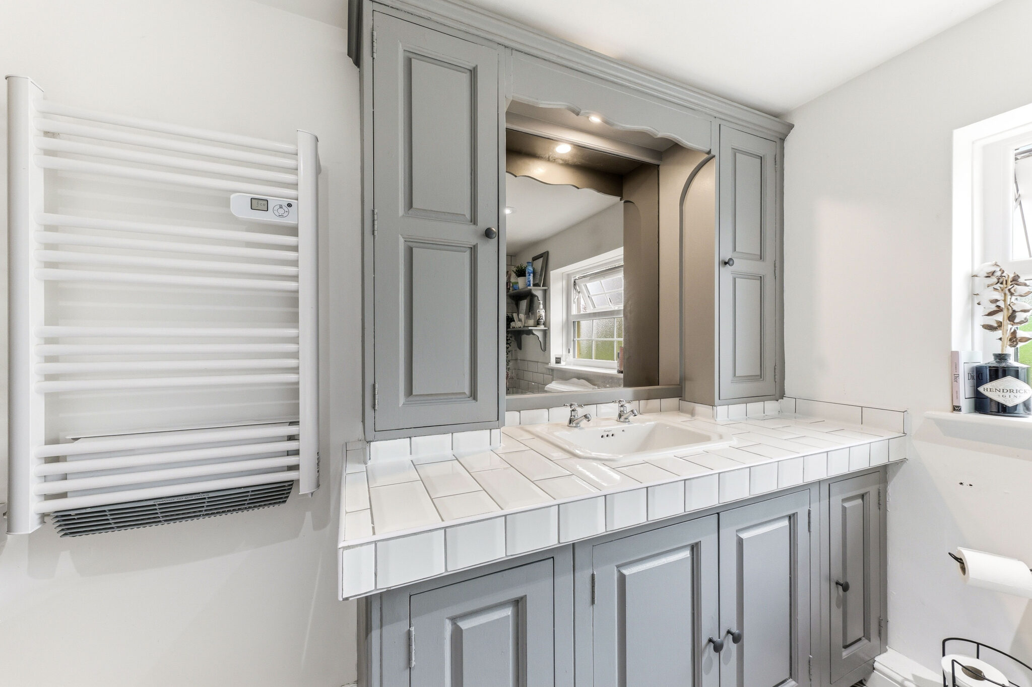 The contemporary bathroom is truly impressive and benefits from a crisp white 3 piece suite alongside gloss tiling and elegant flooring. The larger than average vanity unit offers plenty of storage whilst a window provides further ventilation.