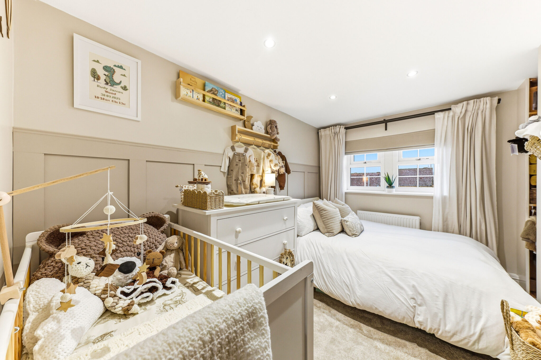 The second bedroom is another fabulous room and boasts a rich colour scheme, new carpet, bespoke panelling and additional storage