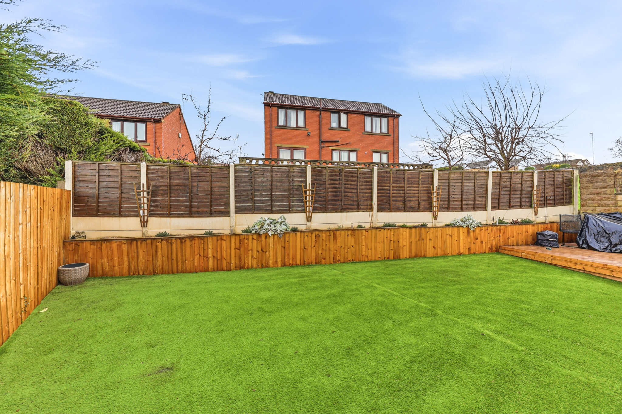 Externally the property continues to excel with beautiful yet low maintenance gardens. There is a private driveway to the front alongside contemporary shale and shrubbery. The rear garden is particularly impressive with 3 separate areas. Firstly there is a patio area which is perfect for summer BBQs whilst there is also a decked zone that is ideal for entertaining. This then gently sweeps into a vast artificial lawn for children.