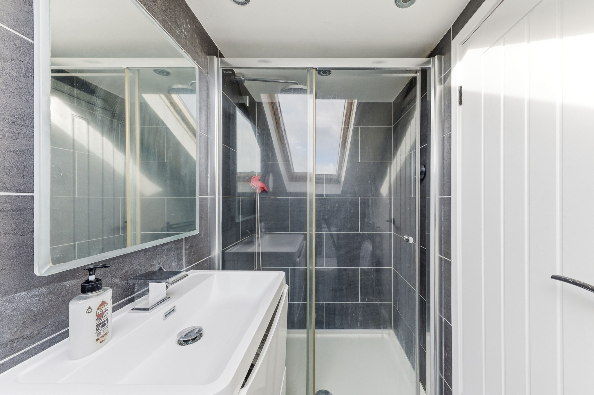 The contemporary ensuite shower room has been finished to the highest of standards with fully tiled walls and a larger than average shower.
