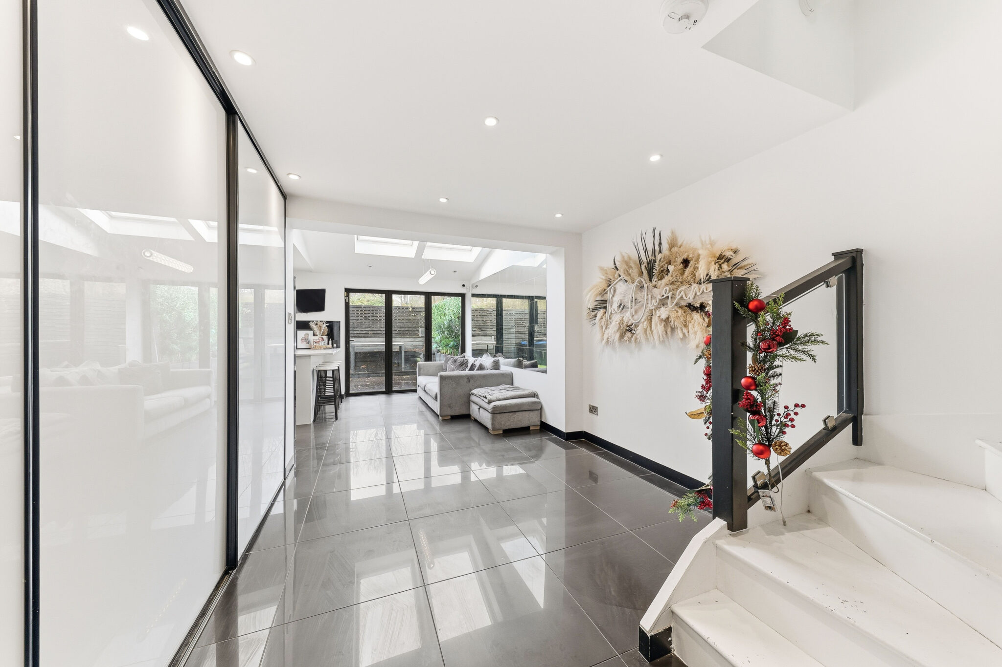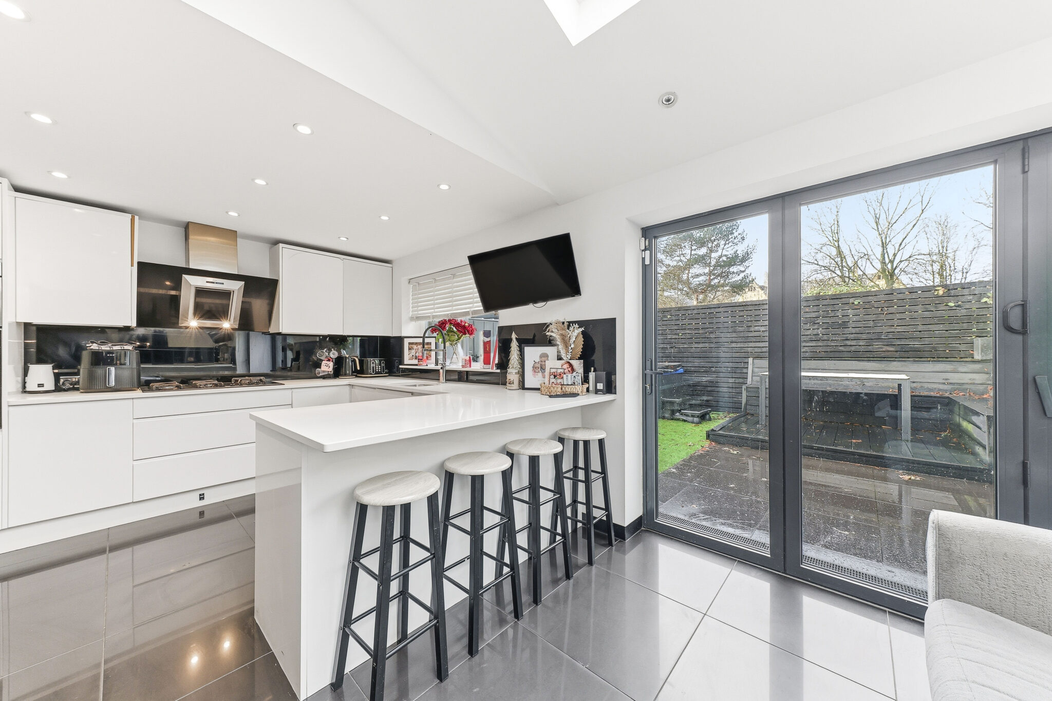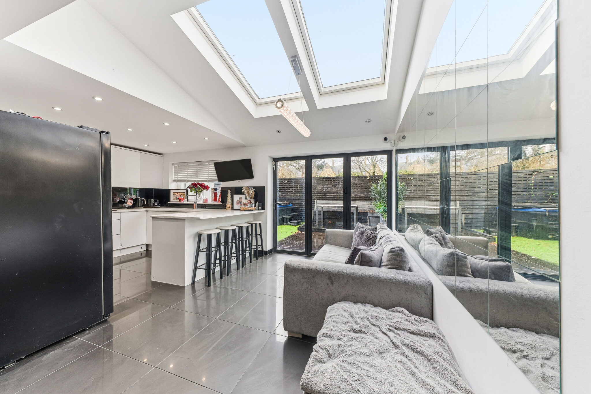 The modern kitchen boasts a wonderful selection of high gloss cupboards that provide ample storage alongside a host of integrated appliances. Furthermore the room benefits from contemporary worktops and flooring allowing buyers to move straight in. However perhaps the real showstopper is the impressive relaxation area with bifold doors that lead outside.