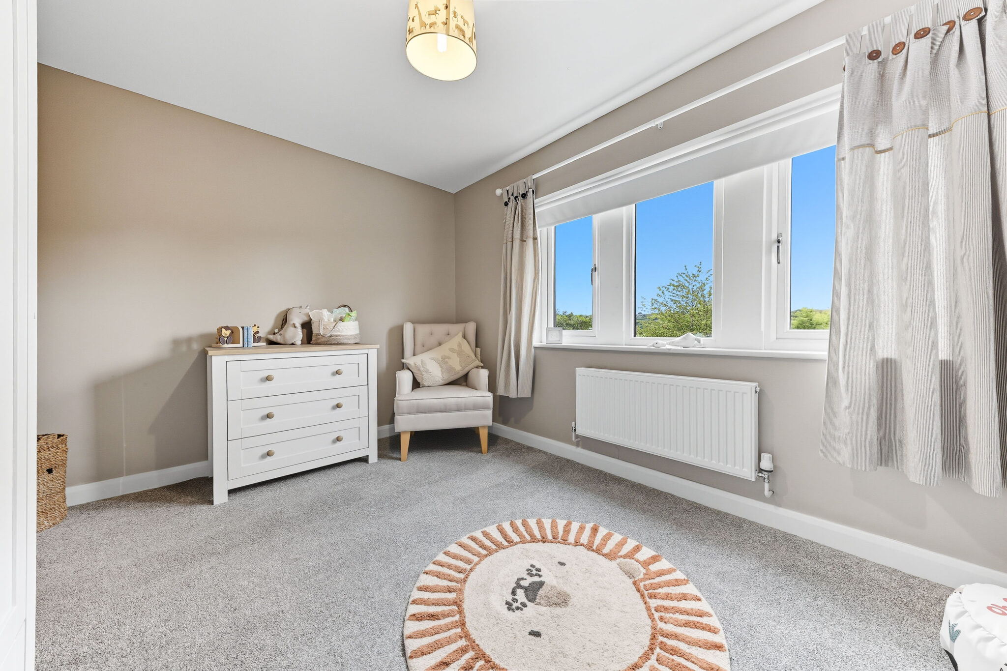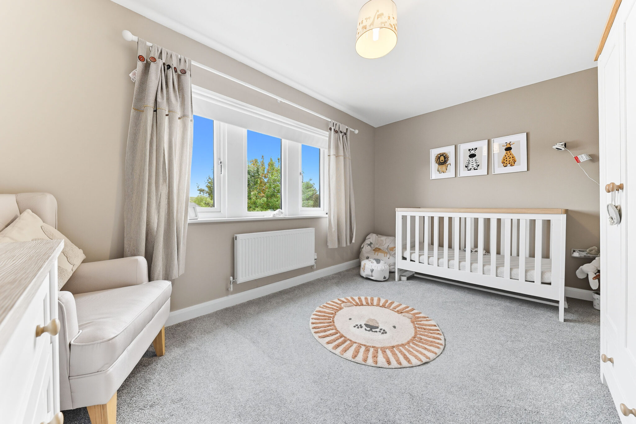 The second double bedroom is currently used as a nursery and offers warm biscuit coloured walls, soft carpet and a large window.