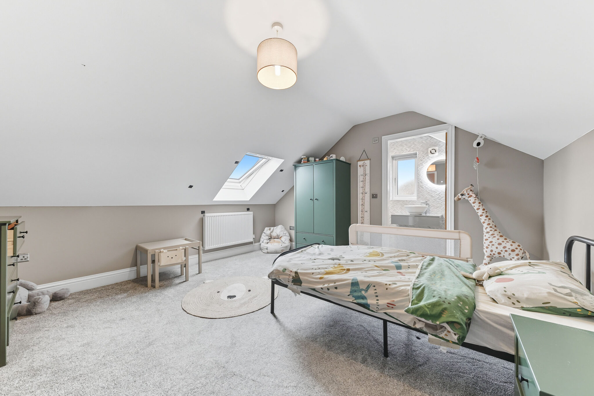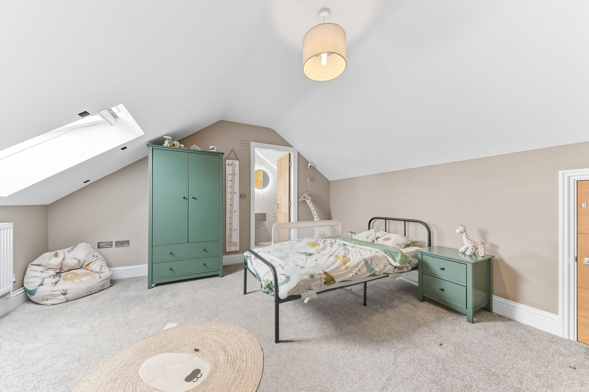 The first bedroom on the upper floor is a wonderful space and would ideally suit an older child seeking further independence. The room benefits from a neutral colour scheme and has an accompanying ensuite.