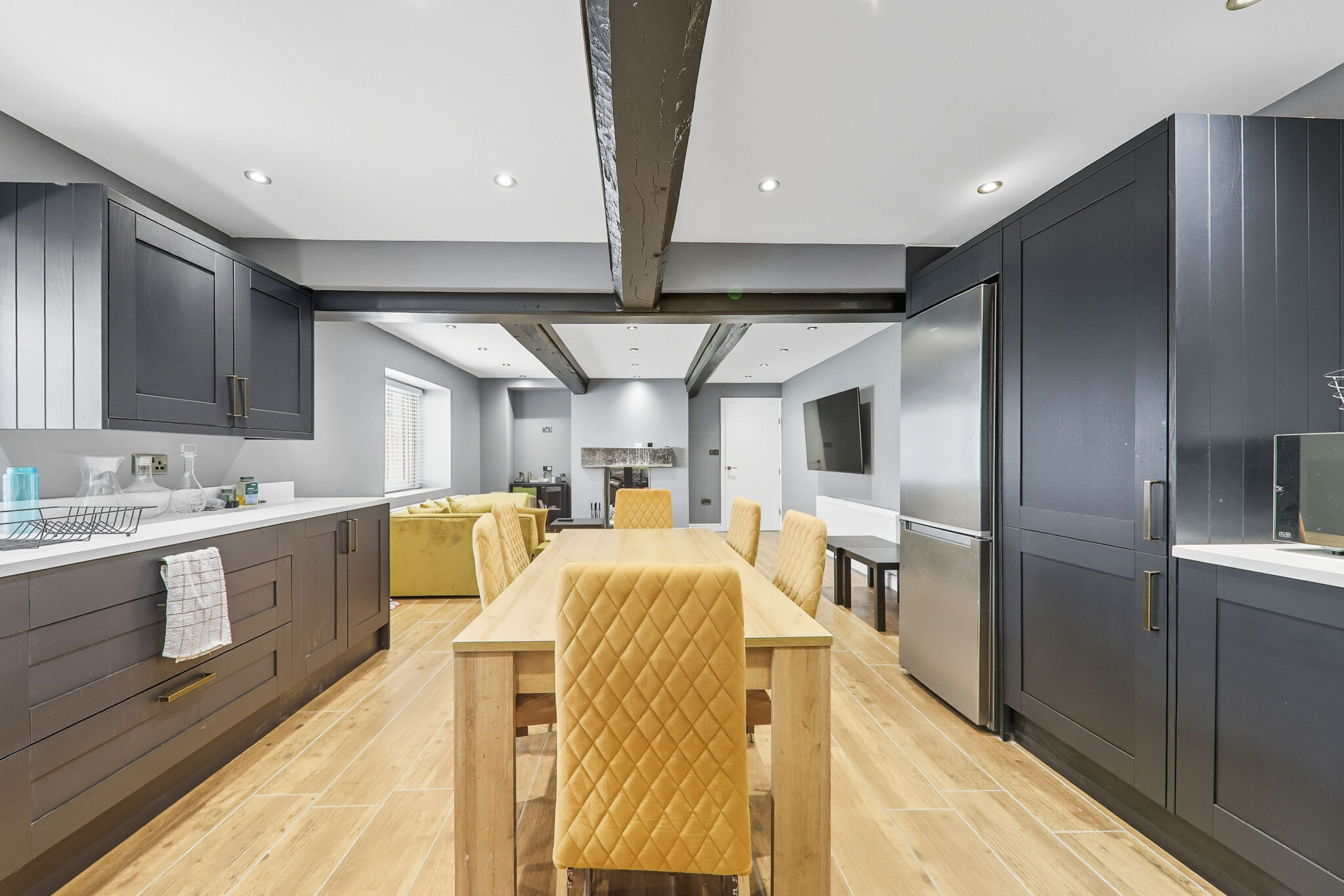 The kitchen diner is an incredibly impressive space and ideally lends itself as a central family hub. The kitchen hosts a wonderful selection of modern cupboards that provide plenty of storage alongside complimentary worktops and flooring.