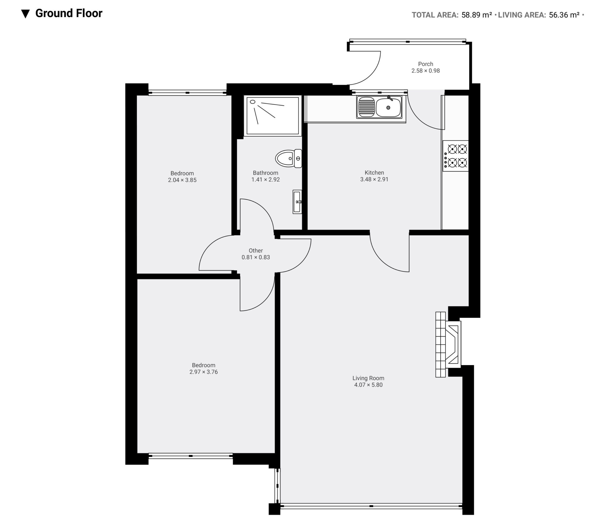 Upon entry there is a spacious porch that leads to the contemporary kitchen offering a selection of modern cupboards and complimentary worktops. There is also space for a breakfast bar or table for informal dining. This then leads effortlessly into the large lounge which boasts huge windows that flood the room with natural light and creates a truly relaxed ambience. The room is extremely versatile with space for a dining suite to facilitate formal dining occasions alongside plenty of room for a large 3 piece suite. A door leads into the central hallway where there are 2 stunning bedrooms and a large shower room.