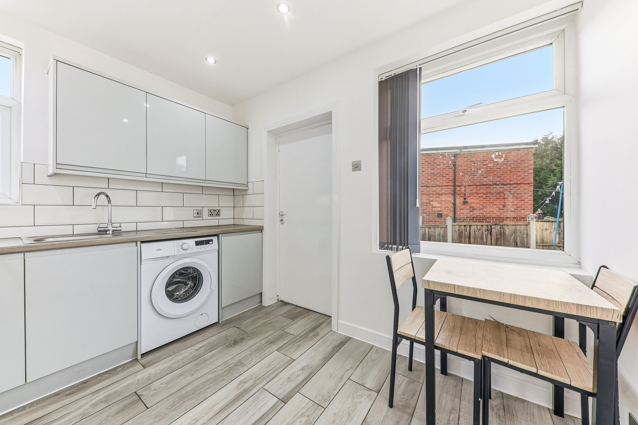 The spacious kitchen area offers an excellent selection of wall and base units that provide plenty of storage opportunities and ample worktop. A large window floods the room with natural light and offers views of the garden whilst a helpful door leads to the decking.